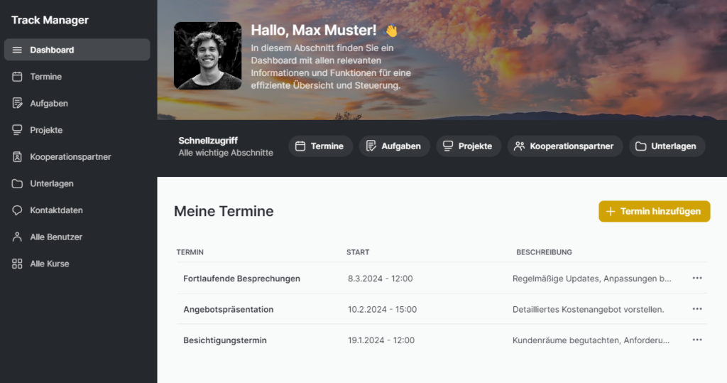 Erstellen und Verwalten Sie ihre Termine für einen effizienteren Ablauf und Kommunikation.